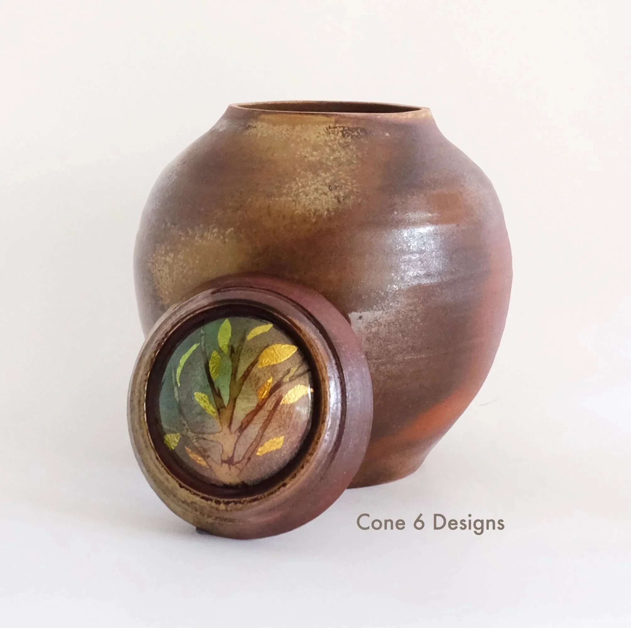 Wood Fired Urn with Reflection Etched Enamel Lid
